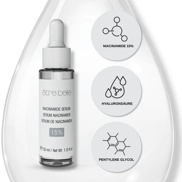 Serum sa 15% Niacinamida kombinuje snagu niacinamida, hijaluronske kiseline i pentilen glikola kako bi intenzivno negovao i hidrirao kožu. Sa visokim sadržajem niacinamida, koža je zaštićena od štetnih uticaja okoline, a barijera kože je ojačana. Hijaluronska kiselina vezuje vlagu i svojim dugotrajnim „booster“ efektom obezbeđuje glatku i svežu kožu. Pentilen glikol dodatno hidrira i podržava strukturu kože. Serum se brzo upija i ostavlja prijatan, gladak i hidriran osećaj na koži. Idealan je za sve tipove kože i savršen kao podloga za svakodnevnu negu.
